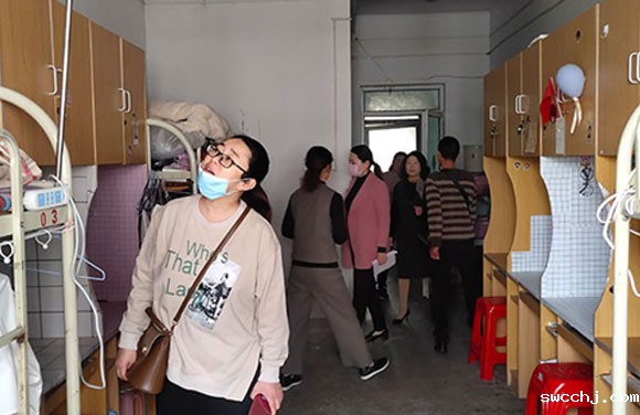 在检查过程中,秉承着以人为本的思想,院领导以及主任们仔细检查了每一个寝室,对寝室的闪光点给予肯定,同时,对不足之处也提出了详细的改进方法。
