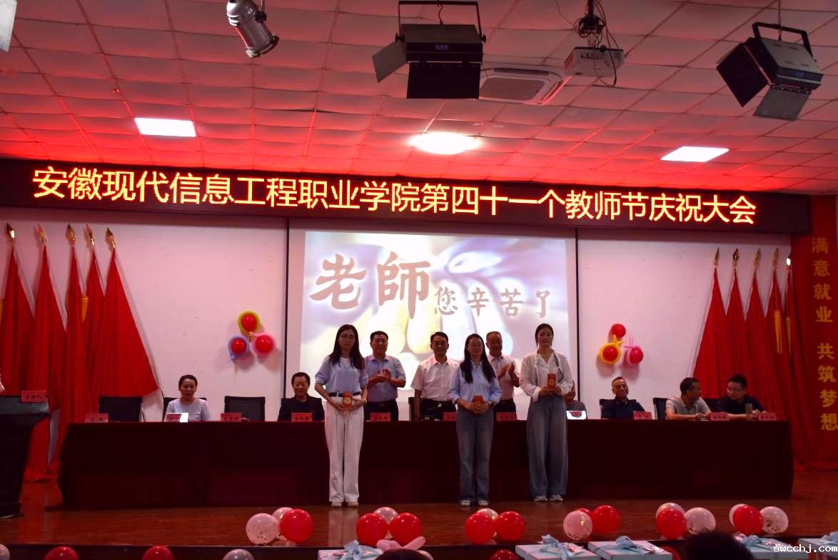大会伊始,主持人团委书记李远萍代表学院领导与全体学生,向辛勤耕耘在教学、管理一线的全体教师致以节日的祝福与诚挚的感谢,随后介绍了到场的学院党董政领导:党委书记卢义忠、执行董事曹学华、院长肖成兵、副院长李涛、副院长李阳、副院长李国全、教学督导蔡泉、工会主席庄雪芹、党委办公室主任吴长奇、院行政办公室主任朱兆林、院长助理刘敏和省教育工委派驻我院支教干部教务处处长盛国超教授、学工部部长兼学生处处长戴文俊教授等领导。大会的主要议程是颁发淮南市教育系统的获奖党员名单,聆听八位来自不同部门的教师代表发言和学院工会主席庄雪芹同志为教师节致辞,党委书记、督导专员卢义忠书记作慰问讲话。