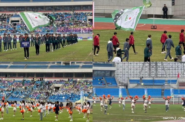开幕式结束,安徽理工大学与淮南师范学院打响揭幕战。现场,我院师生热情高涨,看台上旗帜挥舞,大家紧盯赛场每一次攻防转换,每当球员发起冲锋、完成抢断,整齐的呐喊声与掌声便此起彼伏;学院啦啦队身着统一服装,紧跟赛事节奏跳起活力舞蹈,精准的动作与昂扬的精神风貌,不仅展现了我院学子的青春风采,更有效点燃了现场气氛,为参赛球员注入拼搏动力。有球员表示,观众的热情助威让他们更有斗志,在场上每一次奔跑都更有力量。我院学生们近距离感受足球运动的魅力与体育精神的内涵,更通过集体活动增强了团队凝聚力与集体荣誉感。