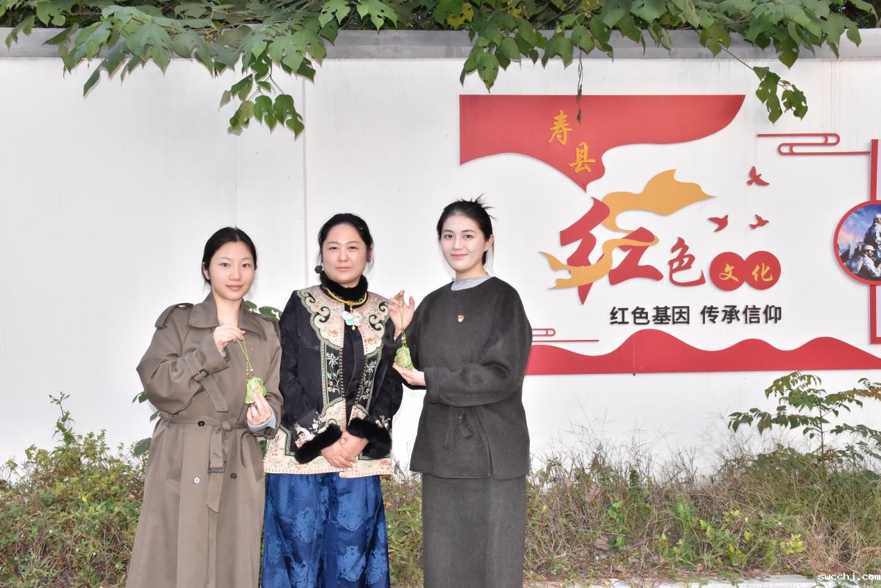香包制作区同样互动热烈,党员许乐老师问道:“李芬芬老师,寿州香草作为寿县特色非遗,装包时怎么处理才能让香味持久,又不影响刺绣效果?”李老师笑着解答:“把香草晒干碾碎,用纱布包成小袋再装入香包,最后采用回针绣,针脚均匀既能固定香料包,又能让字迹饱满清晰。”卢义忠书记饶有兴致地拿起针线,与师生们一同缝制香包、填充香料,现场笑语盈盈、暖意融融。